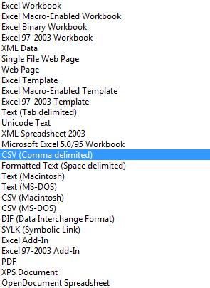 1. In Excel go to File/Save As and a box that looks like the following will appear: